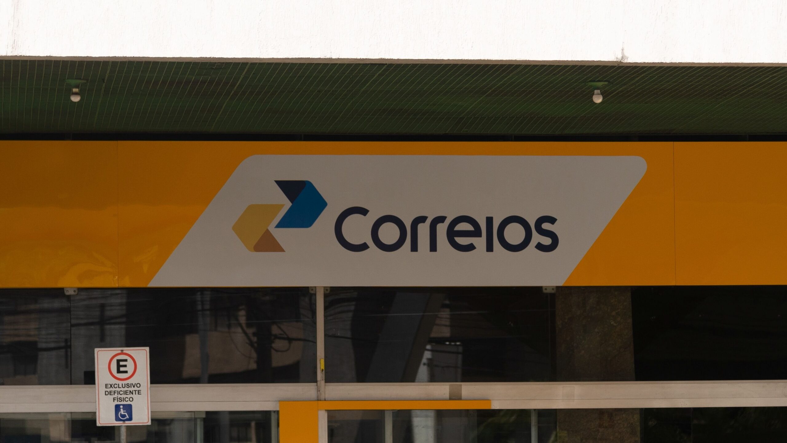 Foto da logo de uma agência dos Correios