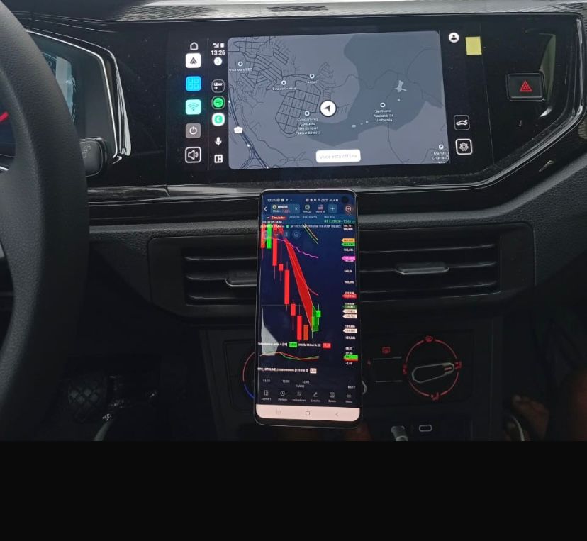 Ainda assim, apesar da rotina intensa como motorista de aplicativo, Cleiton afirma que consegue manter disciplina operacional ao focar apenas na abertura do mercado. Dessa forma, mesmo conciliando as duas atividades, a operação ocorre sem interferir na condução do veículo, já que o celular permanece fixado no painel.