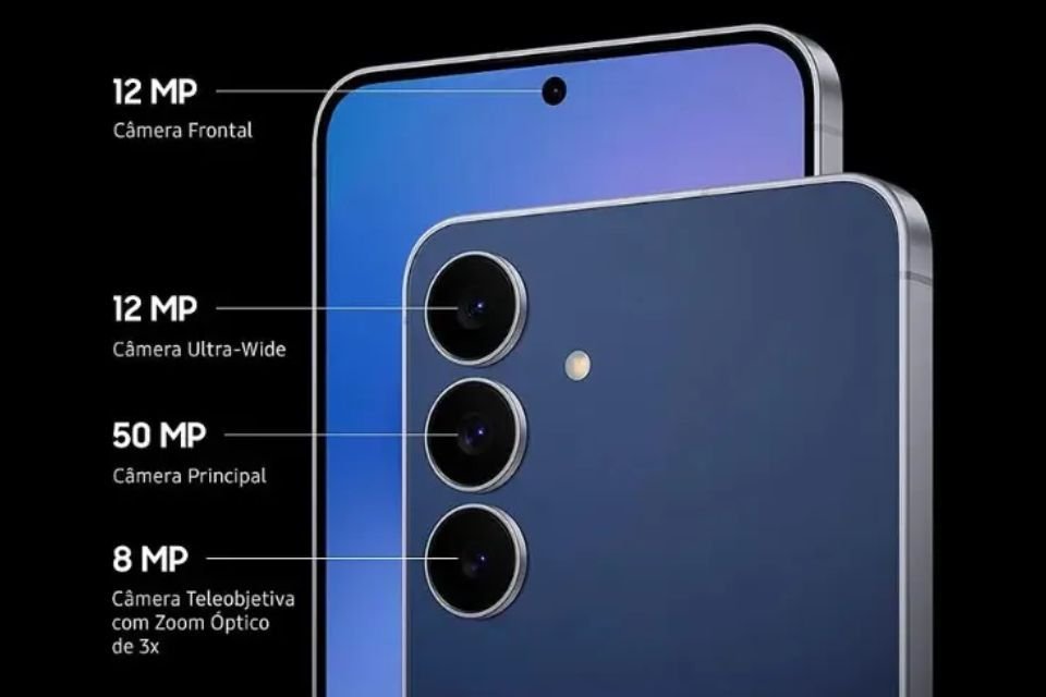Outro grande destaque do Galaxy S25 FE está no seu conjunto de câmeras. O smartphone possui câmera tripla traseira com sensores de 50MP, 12MP e 8MP, além de câmera frontal de 12MP com HDR, permitindo fotos e vídeos com qualidade profissional. O recurso ProVisual Engine utiliza inteligência artificial para aprimorar retratos, selfies e edições, elevando o nível das suas produções de conteúdo.