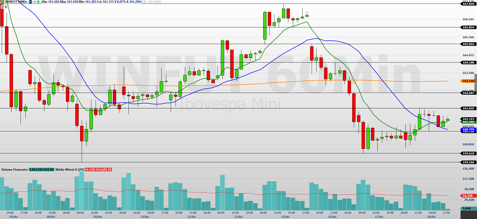 Em caso de correção, a perda de 160.700/159.610 tende a intensificar o fluxo vendedor, com alvos em 159.165/158.545 e, mais abaixo, 158.010/157.325.