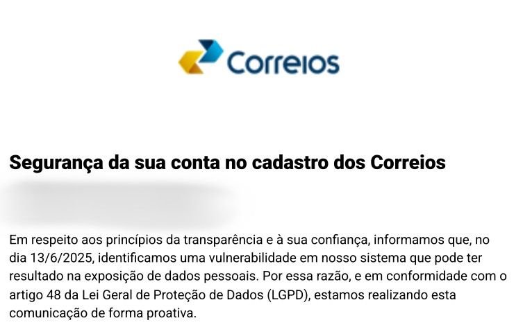 Nesta terça-feira (24) de junho, os Correios enviaram emails para alguns clientes alegando uma vulnerabilidade em seu sistema que pode