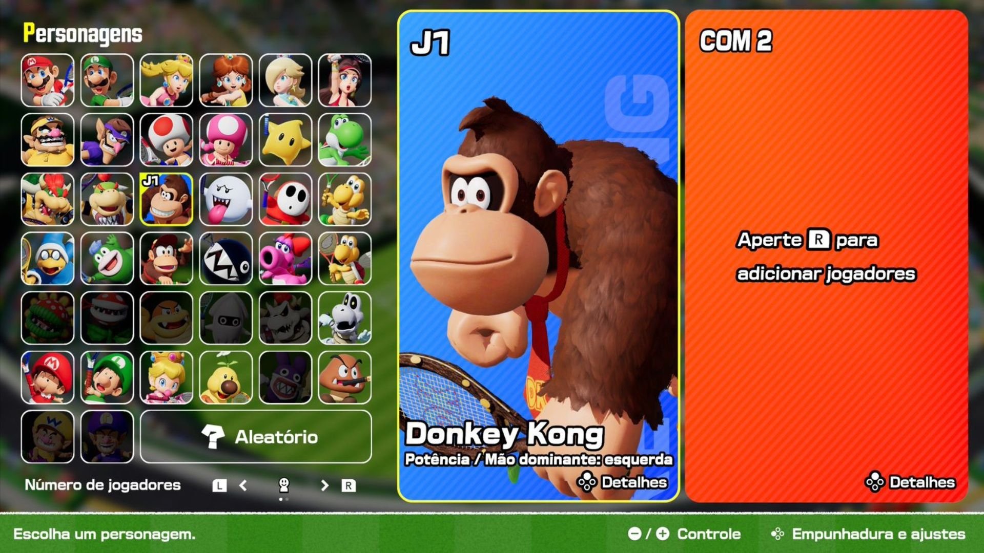 Os mais de 30 personagens jogáveis também têm características próprias e são divididos em classes. Donkey Kong, por exemplo, pertence à categoria Potência, então seus arremessos costumam ser firmes e velozes. Yoshi, por outro lado, não tem força suficiente para projetar lances longos, mas sua velocidade alta permite que ele busque a bola onde quer que seja.