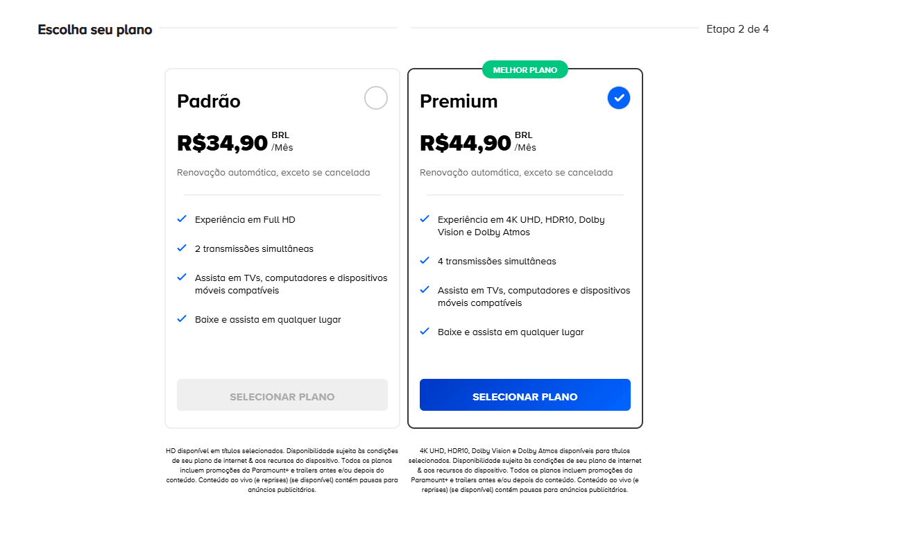 - Com o fim do plano no Brasil, a opção básica passa a ser a Padrão (R$ 34,90 mensais), que oferece as mesmas vantagens e também pode ser acessado em TVs, computadores e TV Sticks e garante a reprodução em até duas telas simultâneas;